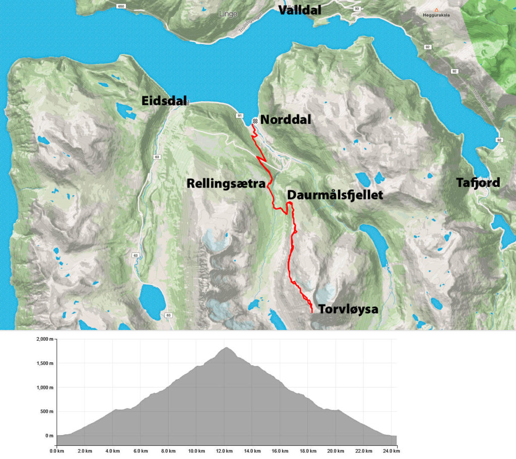 Konkurranseklassene startar nede i bygda og følgjer kvarandre til Daurmålsfjellet 805 m.o.h, som er vendepunktet i den kortaste klassen. Den lengste klassen fortsetter til toppen av Torvløysa på 1851 m.o.h. Nedturen blir ein opptur tilbake til målgang i bygda.