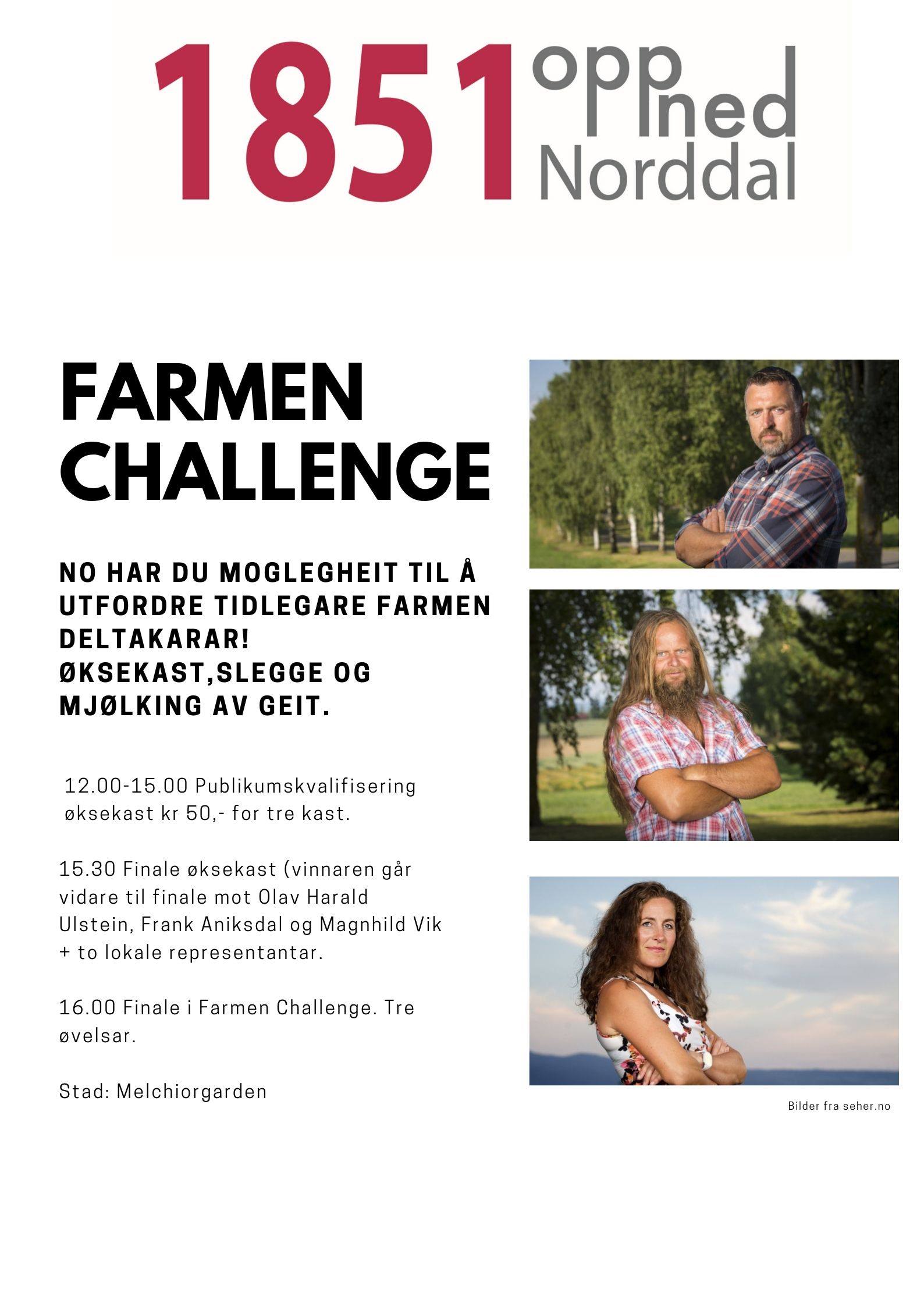 Det blir ikkje berre motbakke- og mosjonsløp under 1851 OppNed Norddal. Arrangørane inviterer i tillegg til ein durabeleg gardsduell, der også publikum kan måle krefter med tidlegare Farmen-deltakarar.