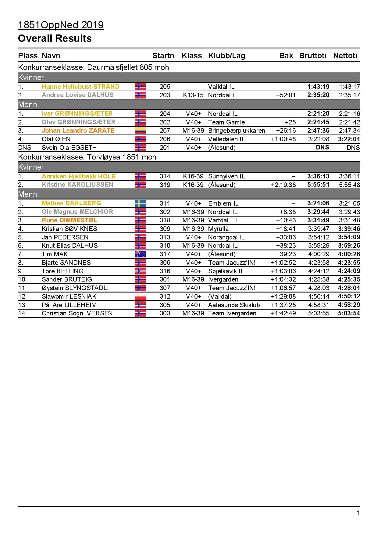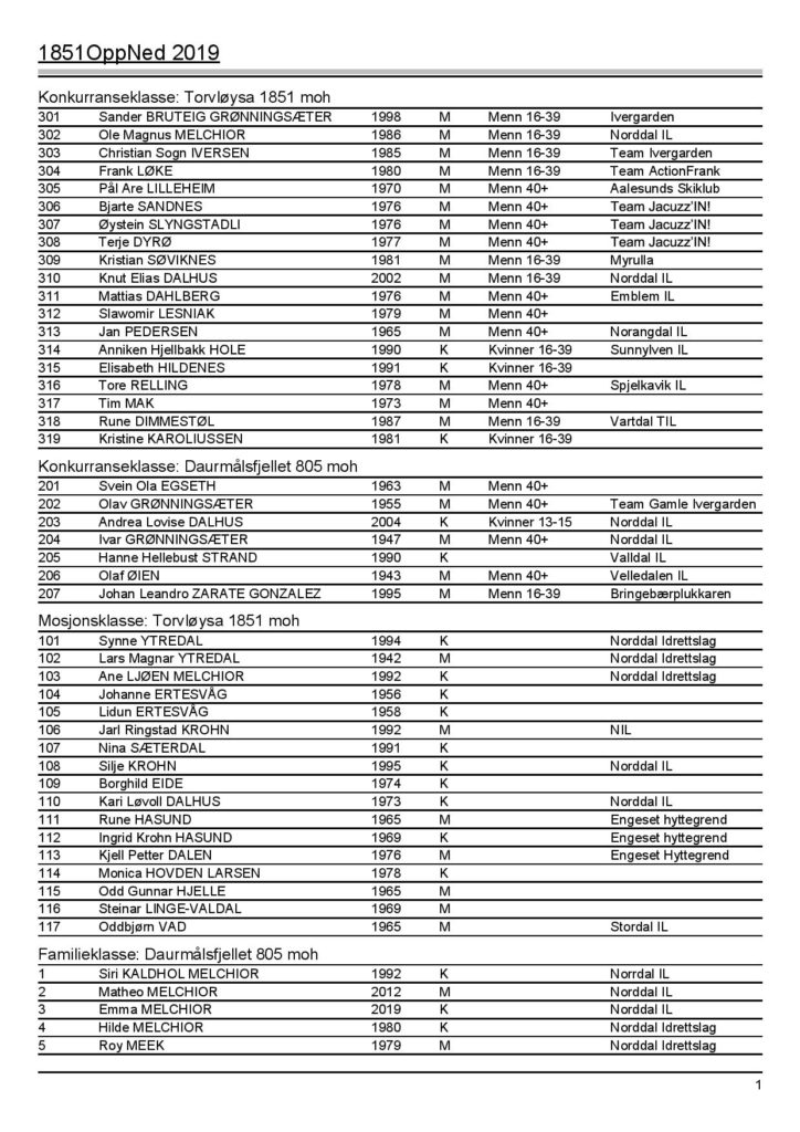 Resultat konkurranseklasser